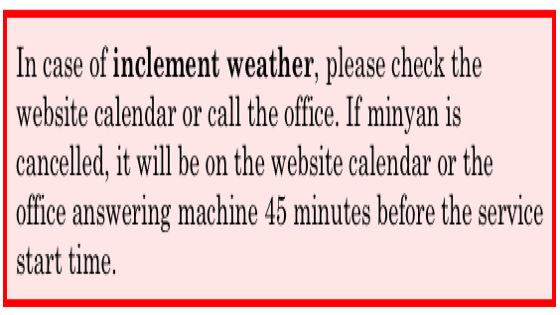 Sunday: 9:00 amMonday-Friday: 7:15 amRosh Chodesh: 7:00 amShabbat : 9:30 amMonday-Thurs: 6:45 pmKabbalat Shabbat 7:30pm